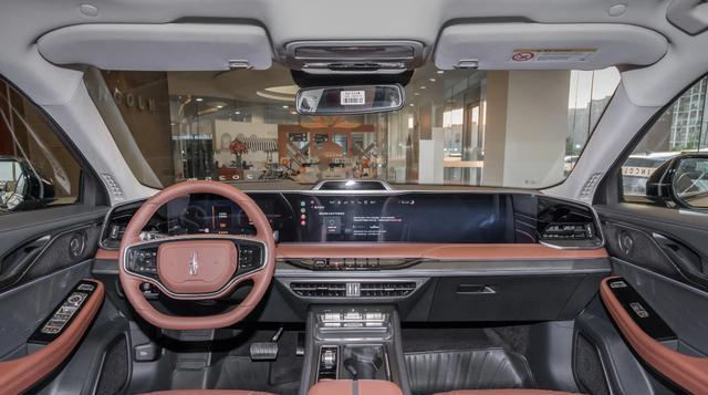 林肯Z在内饰方面,用料也是相当扎实,采用大量皮质包裹,这也是美系车的优点,换挡机构采用按键式,中控台还提供连体式液晶屏幕,全液晶仪表的尺寸为12.3英寸,中控屏幕的尺寸为27英寸,车机芯片为高通骁龙8155,13扬声器锐威音响为标配,低配车型不提供锐威音响,方向盘加热,后视镜倒车自动下翻等配置。